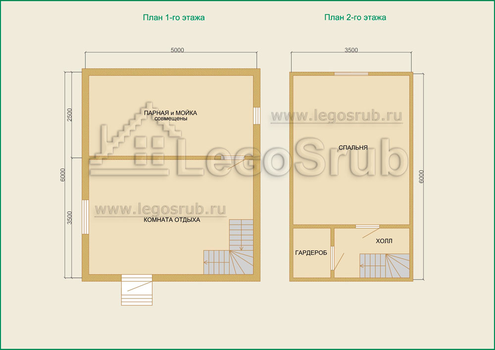 Вагонка на потолок толщина 20 (мм.) -500 (руб/м²) Дверь деревянная на иглицах с коробкой без фурнитуры и монтажа размер: 1750х750 -3800 (руб/шт.) Окно двойное без стекла, фурнитуры и монтажа размер: 500х500 -1500 (руб/шт.) (пиломатериалы и столярные изделия - естественной влажности.) Планировка:На стадии планировки сруба для бани обычно всех беспокоит множество вопросов. Делать ли парную и моечную отдельно, где и как расположить двери и окна, сколько комнат будет в срубе?..Не беспокойтесь!!! Наши специалисты всегда ответят на волнующие Вас вопросы, помогут принять оптимальное решение. Планировка будет происходить под Вашим руководством. Размещение внутренней перегородки, размер помещений, даже расположение будущих окон и дверей сможете выбрать Вы сами. А мы постараемся помочь Вам в этом нелегком выборе. Ниже представлены чертежи, наиболее популярных планировок для бань размера 5*6.