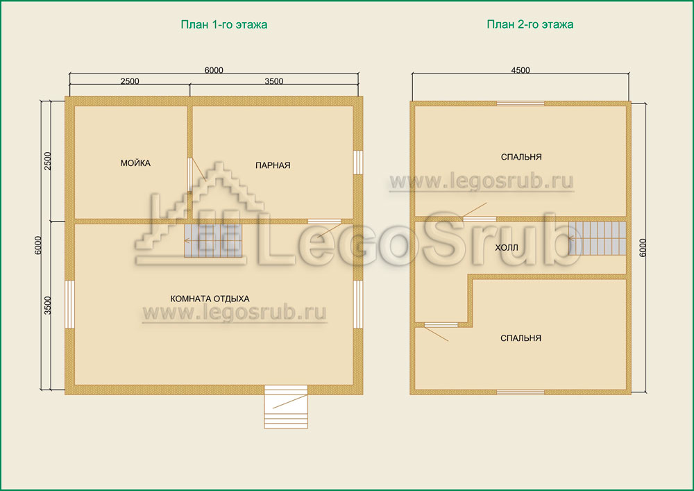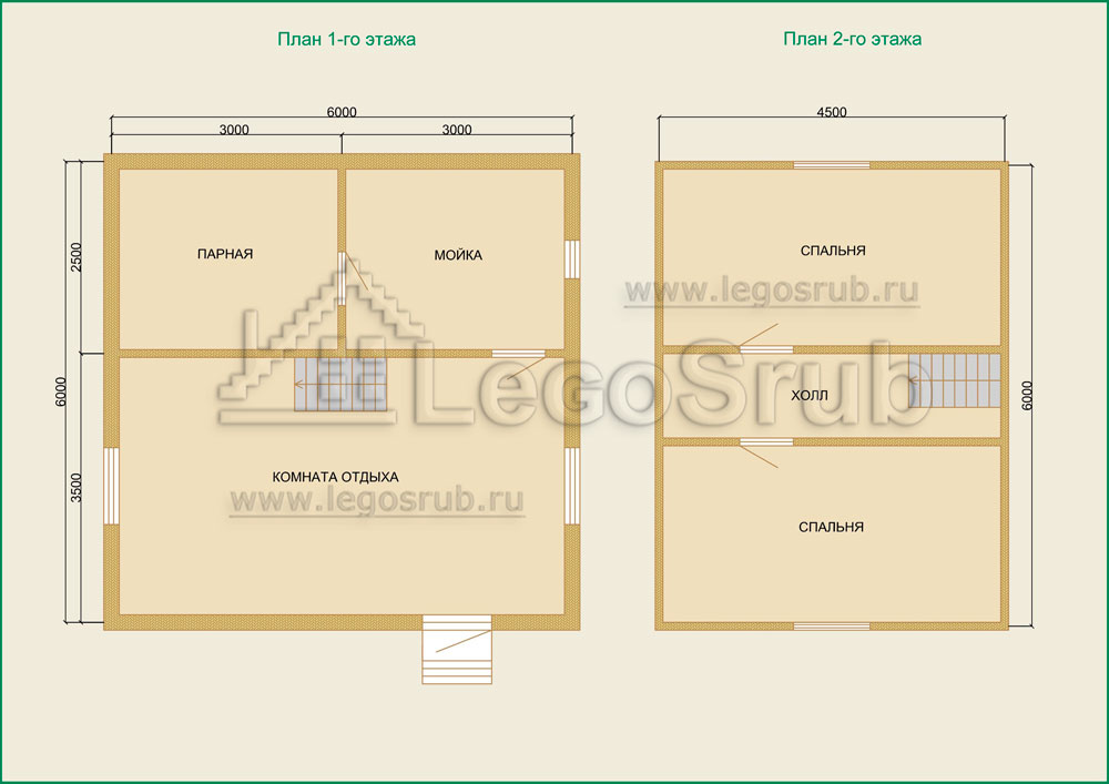 Вагонка на потолок толщина 20 (мм.) -500 (руб/м²) Дверь деревянная на иглицах с коробкой без фурнитуры и монтажа размер: 1750х750 -3800 (руб/шт.) Окно двойное без стекла, фурнитуры и монтажа размер: 500х500 -1500 (руб/шт.) (пиломатериалы и столярные изделия - естественной влажности.) Планировка:На стадии планировки сруба для бани обычно всех беспокоит множество вопросов. Делать ли парную и моечную отдельно, где и как расположить двери и окна, сколько комнат будет в срубе?..Не беспокойтесь!!! Наши специалисты всегда ответят на волнующие Вас вопросы, помогут принять оптимальное решение. Планировка будет происходить под Вашим руководством. Размещение внутренней перегородки, размер помещений, даже расположение будущих окон и дверей сможете выбрать Вы сами. А мы постараемся помочь Вам в этом нелегком выборе. Ниже представлены чертежи, наиболее популярных планировок для бань размера 6*6.