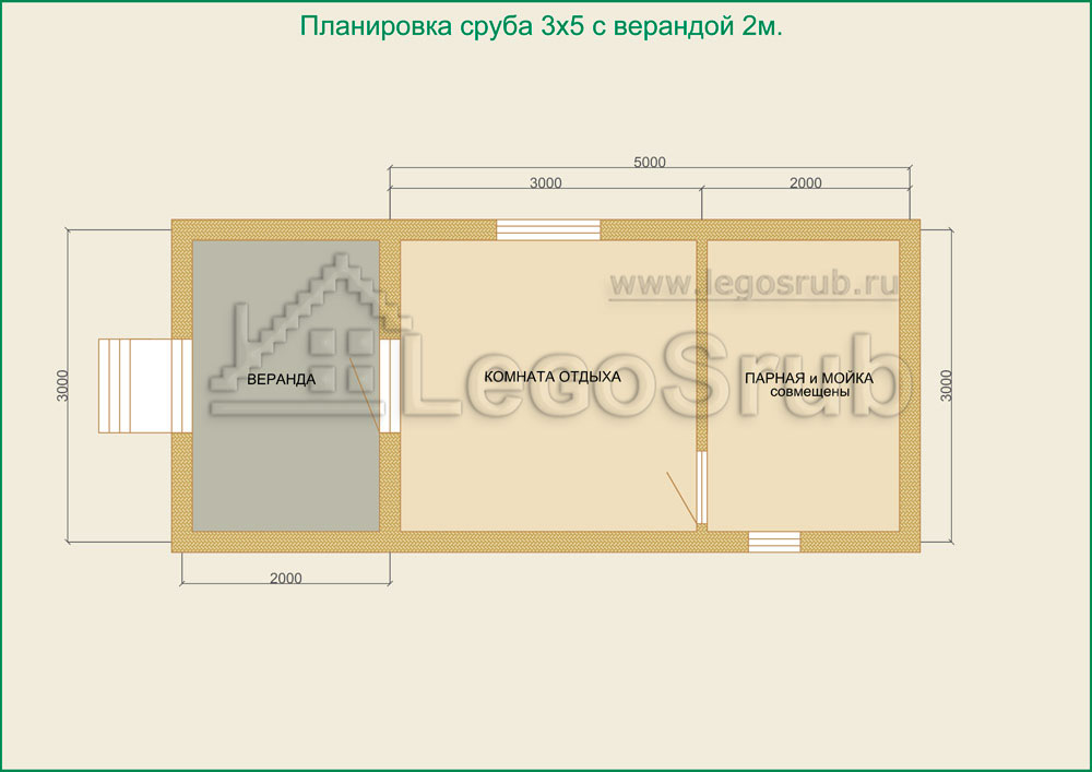 Вагонка на потолок толщина 20 (мм.) -500 (руб/м²) Дверь деревянная на иглицах с коробкой без фурнитуры и монтажа размер: 1750х750 -3800 (руб/шт.) Окно двойное без стекла, фурнитуры и монтажа размер: 500х500 -1500 (руб/шт.) (пиломатериалы и столярные изделия - естественной влажности.) Планировка:На стадии планировки сруба для бани обычно всех беспокоит множество вопросов. Делать ли парную и моечную отдельно, где и как расположить двери и окна, сколько комнат будет в срубе?..Не беспокойтесь!!! Наши специалисты всегда ответят на волнующие Вас вопросы, помогут принять оптимальное решение. Планировка будет происходить под Вашим руководством. Размещение внутренней перегородки, размер помещений, даже расположение будущих окон и дверей сможете выбрать Вы сами. А мы постараемся помочь Вам в этом нелегком выборе. Ниже представлены чертежи, наиболее популярных планировок для бань размера 3*5.