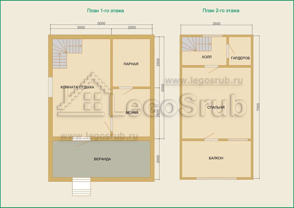 Вагонка на потолок толщина 20 (мм.) -500 (руб/м²) Дверь деревянная на иглицах с коробкой без фурнитуры и монтажа размер: 1750х750 -3800 (руб/шт.) Окно двойное без стекла, фурнитуры и монтажа размер: 500х500 1500 (руб/шт.) (пиломатериалы и столярные изделия - естественной влажности.) Планировка:На стадии планировки сруба для бани обычно всех беспокоит множество вопросов. Делать ли парную и моечную отдельно, где и как расположить двери и окна, сколько комнат будет в срубе?..Не беспокойтесь!!! Наши специалисты всегда ответят на волнующие Вас вопросы, помогут принять оптимальное решение. Планировка будет происходить под Вашим руководством. Размещение внутренней перегородки, размер помещений, даже расположение будущих окон и дверей сможете выбрать Вы сами. А мы постараемся помочь Вам в этом нелегком выборе. Ниже представлены чертежи, наиболее популярных планировок для бань размера 5*5 с верандой и мансардой.