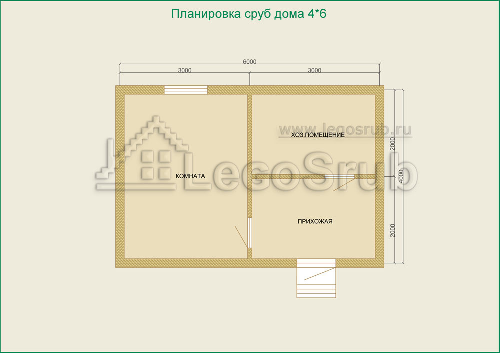 Вагонка на потолок толщина 20 (мм.) -500 (руб/м²) (пиломатериалы естественной влажности.) Планировка:На стадии планировки сруба для дома обычно всех беспокоит множество вопросов. Где и как расположить двери и окна, сколько комнат будет в срубе?..Не беспокойтесь!!! Наши специалисты всегда ответят на волнующие Вас вопросы, помогут принять оптимальное решение. Планировка будет происходить под Вашим руководством. Размещение внутренней перегородки, размер помещений, даже расположение будущих окон и дверей сможете выбрать Вы сами. А мы постараемся помочь Вам в этом нелегком выборе. Ниже представлены чертежи, наиболее популярных планировок для дачных домов из бревна, размера 4*6.