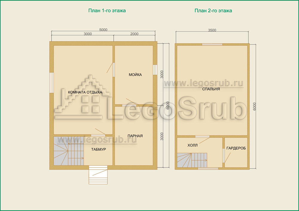 Вагонка на потолок толщина 20 (мм.) -500 (руб/м²) Дверь деревянная на иглицах с коробкой без фурнитуры и монтажа размер: 1750х750 -3800 (руб/шт.) Окно двойное без стекла, фурнитуры и монтажа размер: 500х500 -1500 (руб/шт.) (пиломатериалы и столярные изделия - естественной влажности.) Планировка:На стадии планировки сруба для бани обычно всех беспокоит множество вопросов. Делать ли парную и моечную отдельно, где и как расположить двери и окна, сколько комнат будет в срубе?..Не беспокойтесь!!! Наши специалисты всегда ответят на волнующие Вас вопросы, помогут принять оптимальное решение. Планировка будет происходить под Вашим руководством. Размещение внутренней перегородки, размер помещений, даже расположение будущих окон и дверей сможете выбрать Вы сами. А мы постараемся помочь Вам в этом нелегком выборе. Ниже представлены чертежи, наиболее популярных планировок для бань размера 5*6.