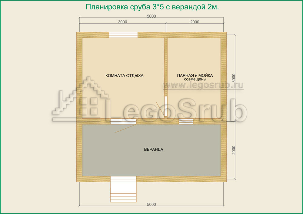 Вагонка на потолок толщина 20 (мм.) -500 (руб/м²) Дверь деревянная на иглицах с коробкой без фурнитуры и монтажа размер: 1750х750 -3800 (руб/шт.) Окно двойное без стекла, фурнитуры и монтажа размер: 500х500 -1500 (руб/шт.) (пиломатериалы и столярные изделия - естественной влажности.) Планировка:На стадии планировки сруба для бани обычно всех беспокоит множество вопросов. Делать ли парную и моечную отдельно, где и как расположить двери и окна, сколько комнат будет в срубе?..Не беспокойтесь!!! Наши специалисты всегда ответят на волнующие Вас вопросы, помогут принять оптимальное решение. Планировка будет происходить под Вашим руководством. Размещение внутренней перегородки, размер помещений, даже расположение будущих окон и дверей сможете выбрать Вы сами. А мы постараемся помочь Вам в этом нелегком выборе. Ниже представлены чертежи, наиболее популярных планировок для бань размера 3*5.
