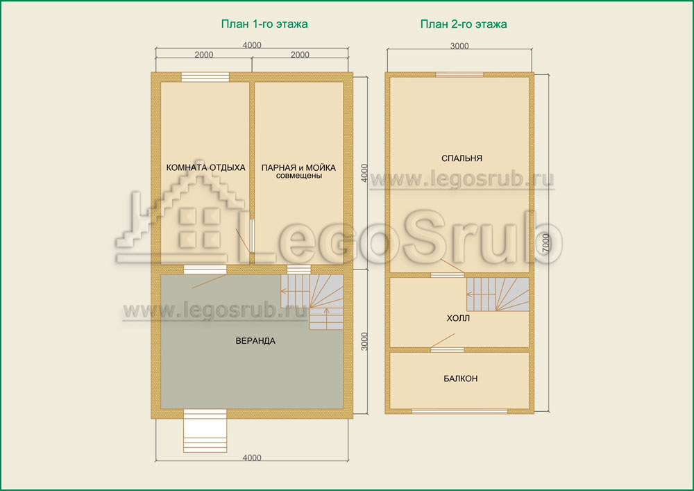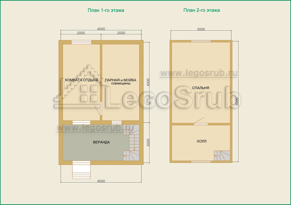 Вагонка на потолок толщина 20 (мм.) -500 (руб/м²) Дверь деревянная на иглицах с коробкой без фурнитуры и монтажа размер: 1750х750 -3800 (руб/шт.) Окно двойное без стекла, фурнитуры и монтажа размер: 500х500 -1500 (руб/шт.) (пиломатериалы и столярные изделия - естественной влажности.) Планировка:На стадии планировки сруба для бани обычно всех беспокоит множество вопросов. Делать ли парную и моечную отдельно, где и как расположить двери и окна, сколько комнат будет в срубе?..Не беспокойтесь!!! Наши специалисты всегда ответят на волнующие Вас вопросы, помогут принять оптимальное решение. Планировка будет происходить под Вашим руководством. Размещение внутренней перегородки, размер помещений, даже расположение будущих окон и дверей сможете выбрать Вы сами. А мы постараемся помочь Вам в этом нелегком выборе. Ниже представлены чертежи, наиболее популярных планировок для бань размера 4*4 с верандой и мансардой.
