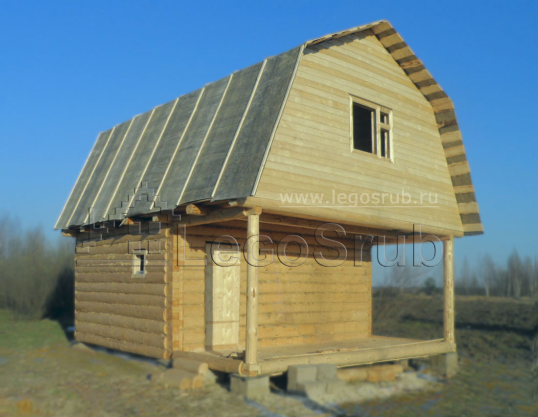 ХарактеристикиТехнология: бревно ручной рубкиРазмеры (м): сруб 4 на 4 с верандой и мансардой Общая площадь: 24 м² Срок строительства: 3-5 дня Описание:Сруб из бревна(диаметр 220-240 мм.), с внутренней перегородкой, изготовлен в лапу полу лафетом.Половые лаги, потолочные балки (бревенчатые). Стропильная система из бруса: 50х150. Выносные бревна под веранду низ и верх - обычно 2 м.