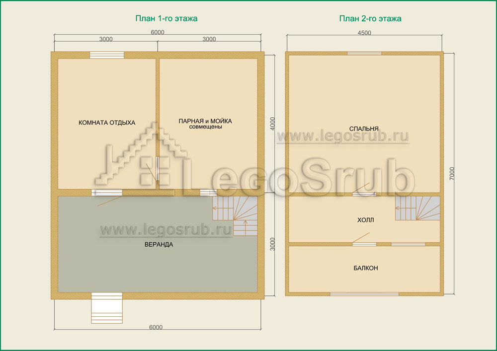 Вагонка на потолок толщина 20 (мм.) -500 (руб/м²) Дверь деревянная на иглицах с коробкой без фурнитуры и монтажа размер: 1750х750 -3800 (руб/шт.) Окно двойное без стекла, фурнитуры и монтажа размер: 500х500 -1500 (руб/шт.) (пиломатериалы и столярные изделия - естественной влажности.) Планировка:На стадии планировки сруба для бани обычно всех беспокоит множество вопросов. Делать ли парную и моечную отдельно, где и как расположить двери и окна, сколько комнат будет в срубе?..Не беспокойтесь!!! Наши специалисты всегда ответят на волнующие Вас вопросы, помогут принять оптимальное решение. Планировка будет происходить под Вашим руководством. Размещение внутренней перегородки, размер помещений, даже расположение будущих окон и дверей сможете выбрать Вы сами. А мы постараемся помочь Вам в этом нелегком выборе. Ниже представлены чертежи, наиболее популярных планировок для бань размера 4*6 с верандой и мансардой.