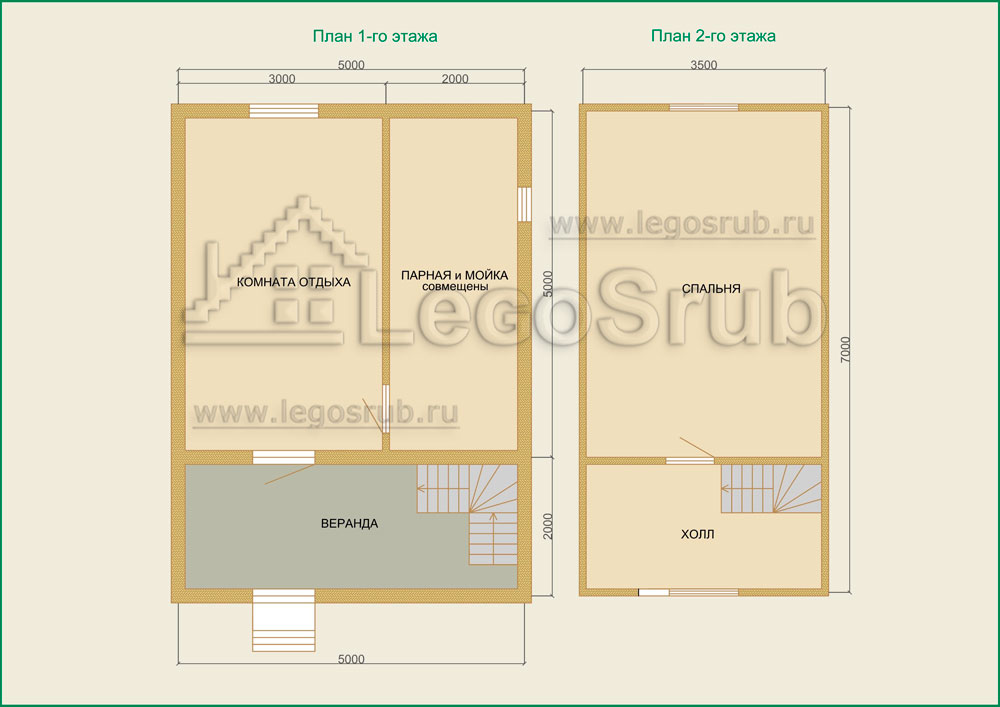 Вагонка на потолок толщина 20 (мм.) -500 (руб/м²) Дверь деревянная на иглицах с коробкой без фурнитуры и монтажа размер: 1750х750 -3800 (руб/шт.) Окно двойное без стекла, фурнитуры и монтажа размер: 500х500 1500 (руб/шт.) (пиломатериалы и столярные изделия - естественной влажности.) Планировка:На стадии планировки сруба для бани обычно всех беспокоит множество вопросов. Делать ли парную и моечную отдельно, где и как расположить двери и окна, сколько комнат будет в срубе?..Не беспокойтесь!!! Наши специалисты всегда ответят на волнующие Вас вопросы, помогут принять оптимальное решение. Планировка будет происходить под Вашим руководством. Размещение внутренней перегородки, размер помещений, даже расположение будущих окон и дверей сможете выбрать Вы сами. А мы постараемся помочь Вам в этом нелегком выборе. Ниже представлены чертежи, наиболее популярных планировок для бань размера 5*5 с верандой и мансардой.