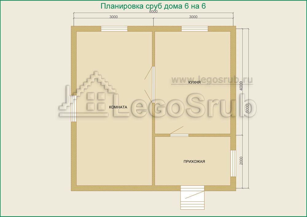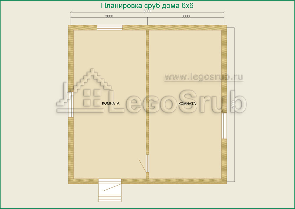 Вагонка на потолок толщина 20 (мм.) -500 (руб/м²) (пиломатериалы естественной влажности.) Планировка:На стадии планировки сруба для дома обычно всех беспокоит множество вопросов. Где и как расположить двери и окна, сколько комнат будет в срубе?..Не беспокойтесь!!! Наши специалисты всегда ответят на волнующие Вас вопросы, помогут принять оптимальное решение. Планировка будет происходить под Вашим руководством. Размещение внутренней перегородки, размер помещений, даже расположение будущих окон и дверей сможете выбрать Вы сами. А мы постараемся помочь Вам в этом нелегком выборе. Ниже представлены чертежи, наиболее популярных планировок для дачных домов из бревна, размера 6*6.