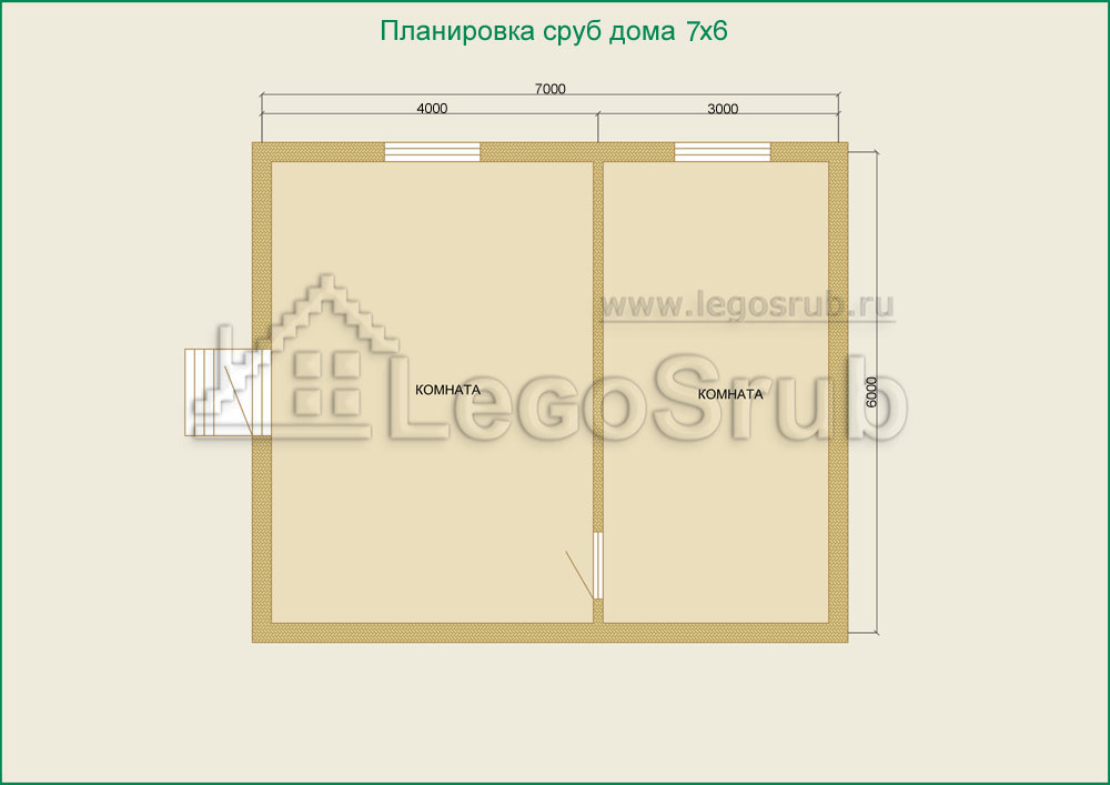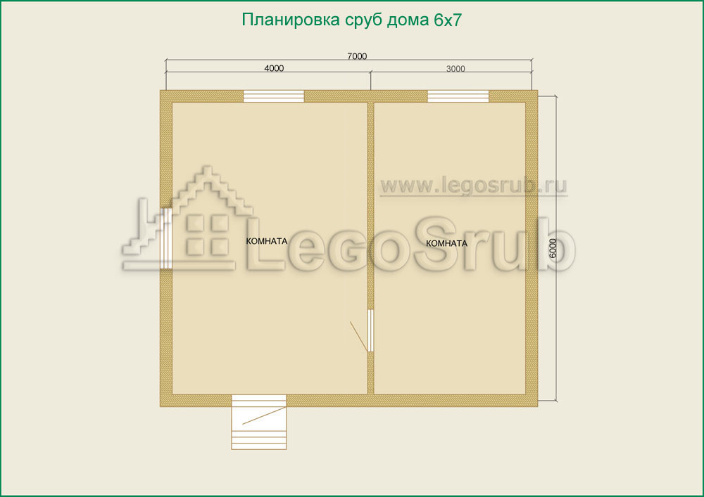 Вагонка на потолок толщина 20 (мм.) -500 (руб/м²) (пиломатериалы естественной влажности.) Планировка:На стадии планировки сруба для дома обычно всех беспокоит множество вопросов. Где и как расположить двери и окна, сколько комнат будет в срубе?..Не беспокойтесь!!! Наши специалисты всегда ответят на волнующие Вас вопросы, помогут принять оптимальное решение. Планировка будет происходить под Вашим руководством. Размещение внутренней перегородки, размер помещений, даже расположение будущих окон и дверей сможете выбрать Вы сами. А мы постараемся помочь Вам в этом нелегком выборе. Ниже представлены чертежи, наиболее популярных планировок для дачных домов из бревна, размера 6*7.